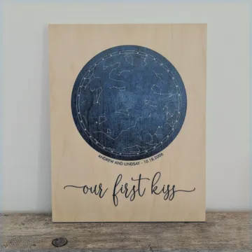 Een gepersonaliseerde sterrenkaart van de hemel zoals die eruitzag op een belangrijke datum - de geboorte van zijn kind bijvoorbeeld. Een uniek en betekenisvol stukje wanddecoratie dat hem elke dag aan dat bijzondere moment herinnert.